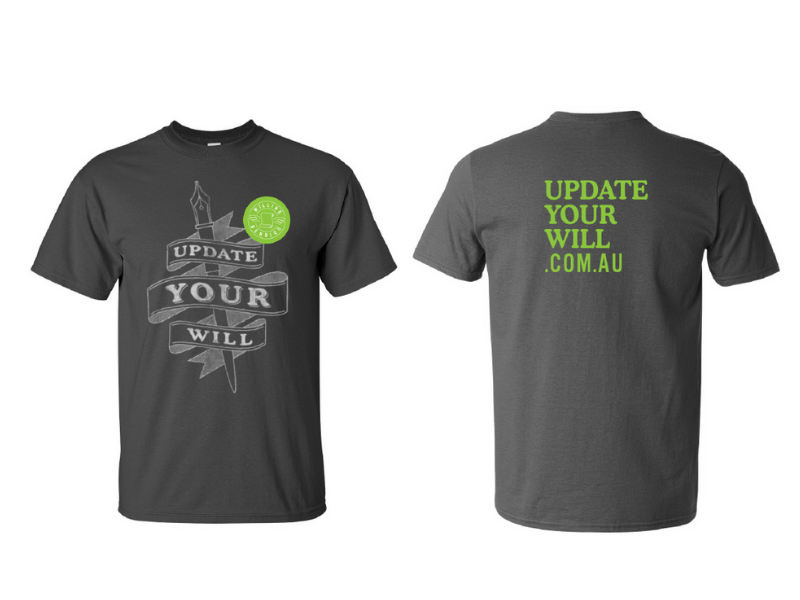 Design partners Studio Ink created a website for Willing Bendigo, designed disposable coffee cups and t-shirts to raise awareness for an event we created called Update Your Will Day.